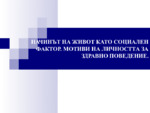 Начини на живот като социален фактор. Мотиви на личността за здравно поведение